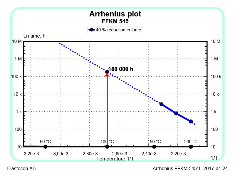 Stress relaxation tests are ideal for making lifetime estimations using an Arrhenius plot. How to do an estimation of lifetime of rubber materials using an Arrhenius plot is described in the standard ISO 11346.